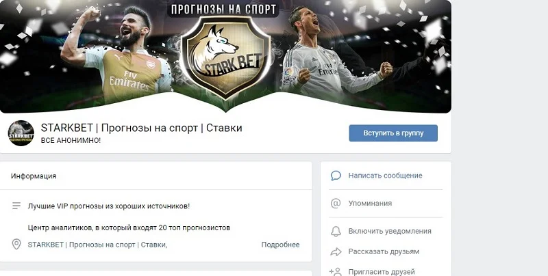 Каппер активно работает над присвоением себе положительной репутации. Для этого во Вконтакте и в интернете регулярно создаются проплаченные группы и обзоры с хвалебными отзывами о Starkbet.