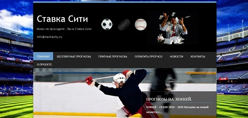 Проанализировав работу сайта Ставка Сити, мы можем сказать следующие: прогнозы не верифицированы. Цены на подписки очень дорогие. Если купить футбол, хоккей и бейсбол, то нужно за месяц заплатить 36 000 рублей.