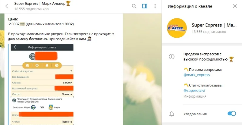 Таким образом, публикуемые купоны в канале не несут в себе никакой ценности. Они создаются на виртуальные деньги, как те выигрыши, которыми хвастается админ чата. Анонсируя платный экспресс, Марк гарантирует пользователям их 100% проходимость, чего профессиональный и честный эксперт делать априори не может.