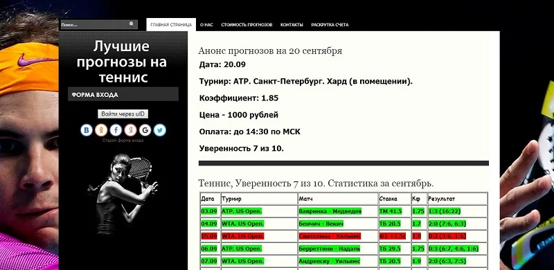 Платные прогнозы на сайте Tennisprognoz.com разделены на две категории: