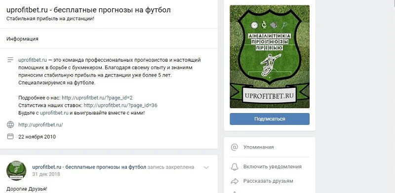 Сообщество Your Profit — Bet в социальной сети Вконтакте собрала 2,5 тысячи подписчиков. Войти в сообщество можно без одобрения администратора