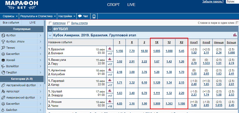 Как выглядят ставки на двойной исход в росписи букмекеров