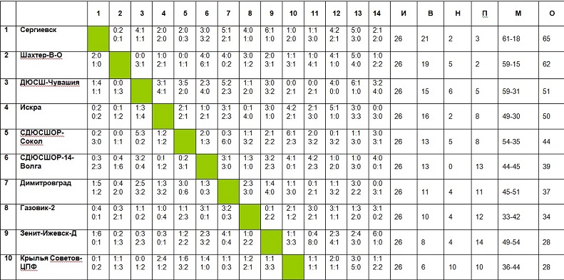 Шахматка - подробная таблица любого спортивного первенства. В ней отображается детальная статистика соревнований: кол-во побед, поражений, ничьих, общая сумма забитых и пропущенных мячей и количество набранных очков.