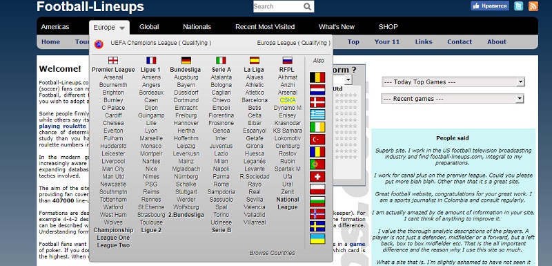 Интерфейс сайта football-lineups.com представлен только на английском языке. Поэтому, русскоязычным игрокам нужно будет время на освоение его навигационной системы и сервисов. Впрочем, даже при не самых высоких познаниях английского языка, пользователи могут быстро абстрагироваться ко всем аспектам, применим стандартный переводчик в браузере.