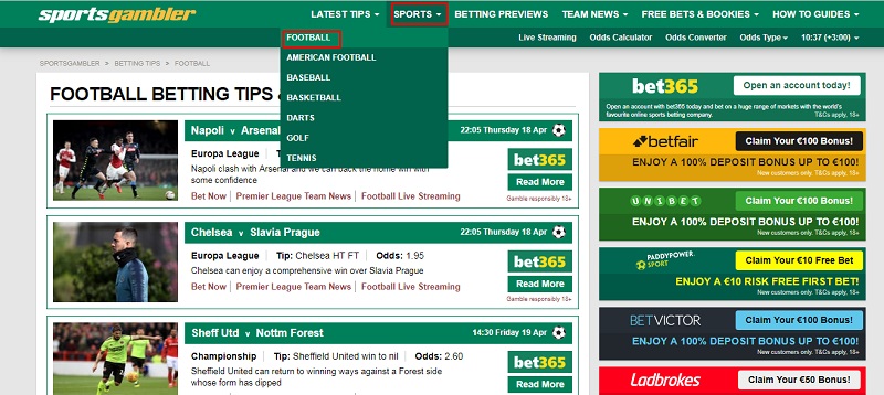 Верхняя навигационная панель сайта Sportsgambler.com также не должна остаться без внимания поклонников ставок на футбол.