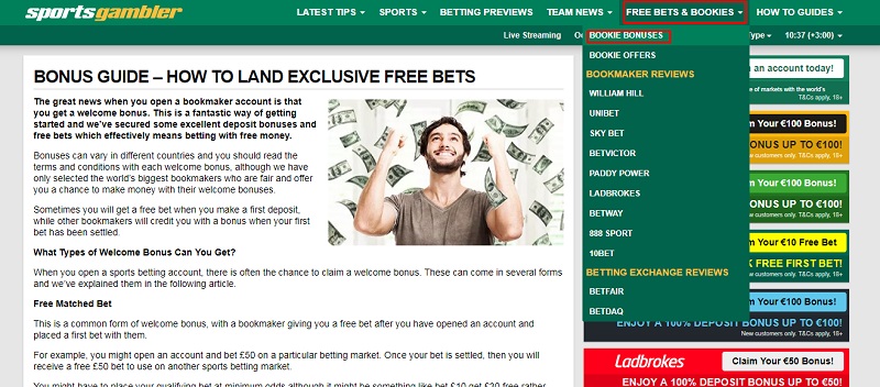 Раздел «Free Bets» посвящен актуальным бонусам букмекерских контор, а меню «How to Guides» станет отличным помощником для начинающих игроков, т.к. в нем публикуется много полезной информации и инструкция для выгодных ставок на спорт.