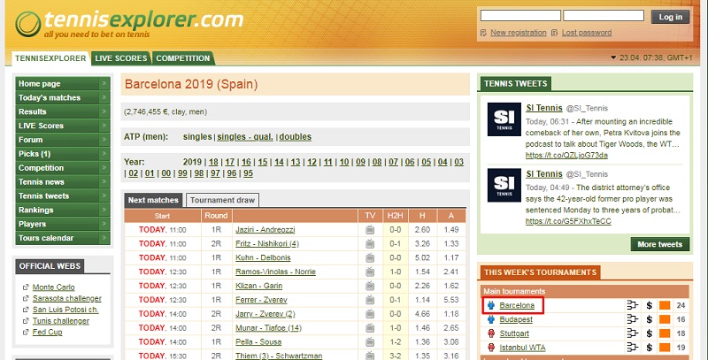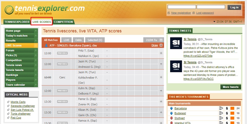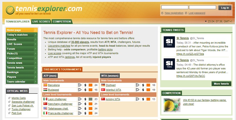 Сайт Tennisexplorer дает возможность поклонникам ставок на теннис изучать подробную статистику информацию об игроках и турнирах. Доступ ко всем опциям сервиса открывается после регистрации, которую можно пройти бесплатно.