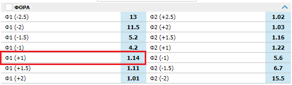 Ставка на «фора 1 (+1)» в большинстве случаев применима для футбольных и хоккейных событий. Заключив такое пари, игрок прогнозирует, что хозяева поединка выиграют, сыграют вничью или проиграют с разницей в один гол. В случае последнего исхода, ставка получит возврат (выплата с коэффициентом 1).