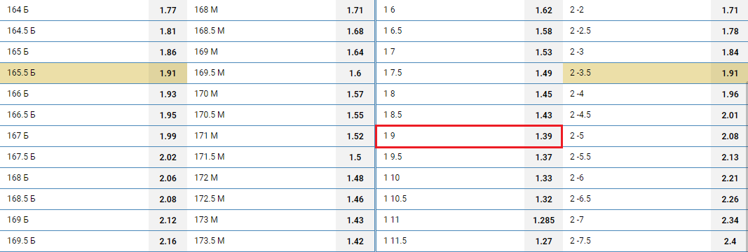 Ставка «фора 1 (+9)» будет уместна для баскетбольного поединка. Такой прогноз сыграет, если первая команда по итогам матча проиграет, не больше, чем в девять очков. Если разница в счете составит ровно девять баллов (в пользу гостей), пари будет рассчитано с коэффициентом 1 (возврат).