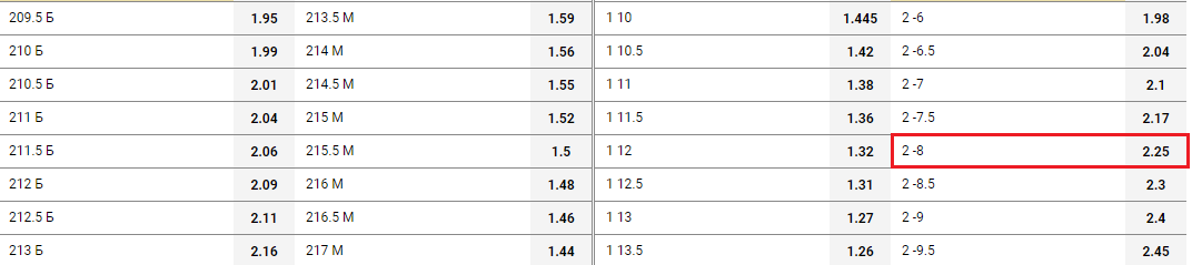 Ставка «фора 2(-8)» полностью сыграет и принесет игроку прибыль, если вторая команда в матче одержит победу с преимуществом в 9 и больше очков. Если гости победят с разницей в 8 очков, такая ставка получит возврат и игрок вернет поставленную сумму.