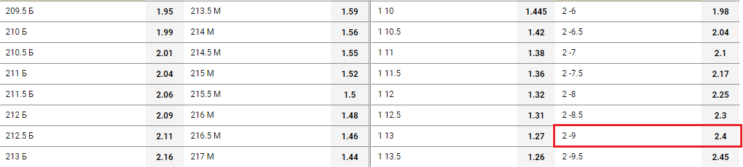 Ставка «фора 2(-9)» популярная для баскетбольных событий. Она полностью сыграет и принесет игроку выигрыш, если вторая команда одержит победу с преимуществом в 10 очков или больше. Если гости (вторая команда) победит с разницей в 9 очков, эта ставка будет рассчитана с коэффициентом 1 – игрок получит обратно поставленную сумму. Проигрышным для этого вида пари станет результат, при котором вторая команда победит с разницей от 1 до 8 очков, сыграет вничью или проиграет.