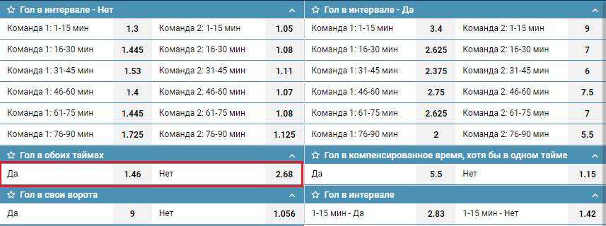 Как трактуется исход ставки «голы в обоих таймах»? Что нужно знать об исходах данного типа? В каких случаях такая ставка приносит игроку выигрыш?