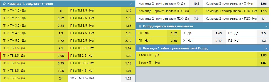 Выборы «Победит + ТБ (2,5)» в большинстве случаев размещаются на футбол и хоккей. Делая такой выбор, игрок прогнозирует, что команда, на которую он делает ставку, победит в матче и при этом, участники матча забьют три гола или больше (забросят шайб).