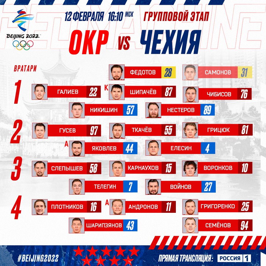 В такой ситуации перестановки в составе перед игрой с Чехией были неизбежны, они и случились. Впервые в заявку попал форвард ЦСКА Сергей Плотников, заменивший травмировавшегося Артура Каюмова, тренерский штаб сильно перетряхнул звенья, а самое главное – развел по разным пятеркам Вадима Шипачева и Никиту Гусева, двух главных креативщиков сборной. Ворота же снова доверили Ивану Федотову: стало очевидно, что несмотря на гарантированное первое место в группе, российская команда отнеслась к матчу с чехами максимально серьезно.