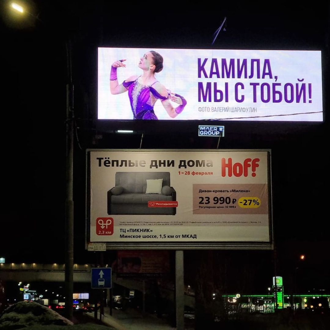 На улицах Москвы появились баннеры и рекламные щиты в поддержку российской фигуристки Камилы Валиевой.