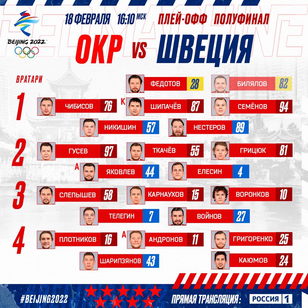 Пытаться разглядеть в этих цифрах подсказку на возможный исход важнейшего матча в Пекине было также бесполезно, как пробовать найти в составе сборной России на эту игру Станислава Галиева. Форварда «Динамо» посадили на лавку еще в третьем периоде четвертьфинала, поэтому новые санкции по отношению к нему от тренерского штаба никого не удивили. Чего не скажешь о первой тройке нападения нашей команды – кто бы мог подумать еще пару месяцев назад, что на самый важный матч четырехлетия в ведущем звене сборной окажется не только Вадим Шипачев, но и два «ролевика» в лице Андрея Чибисова и Кирилла Семенова?!