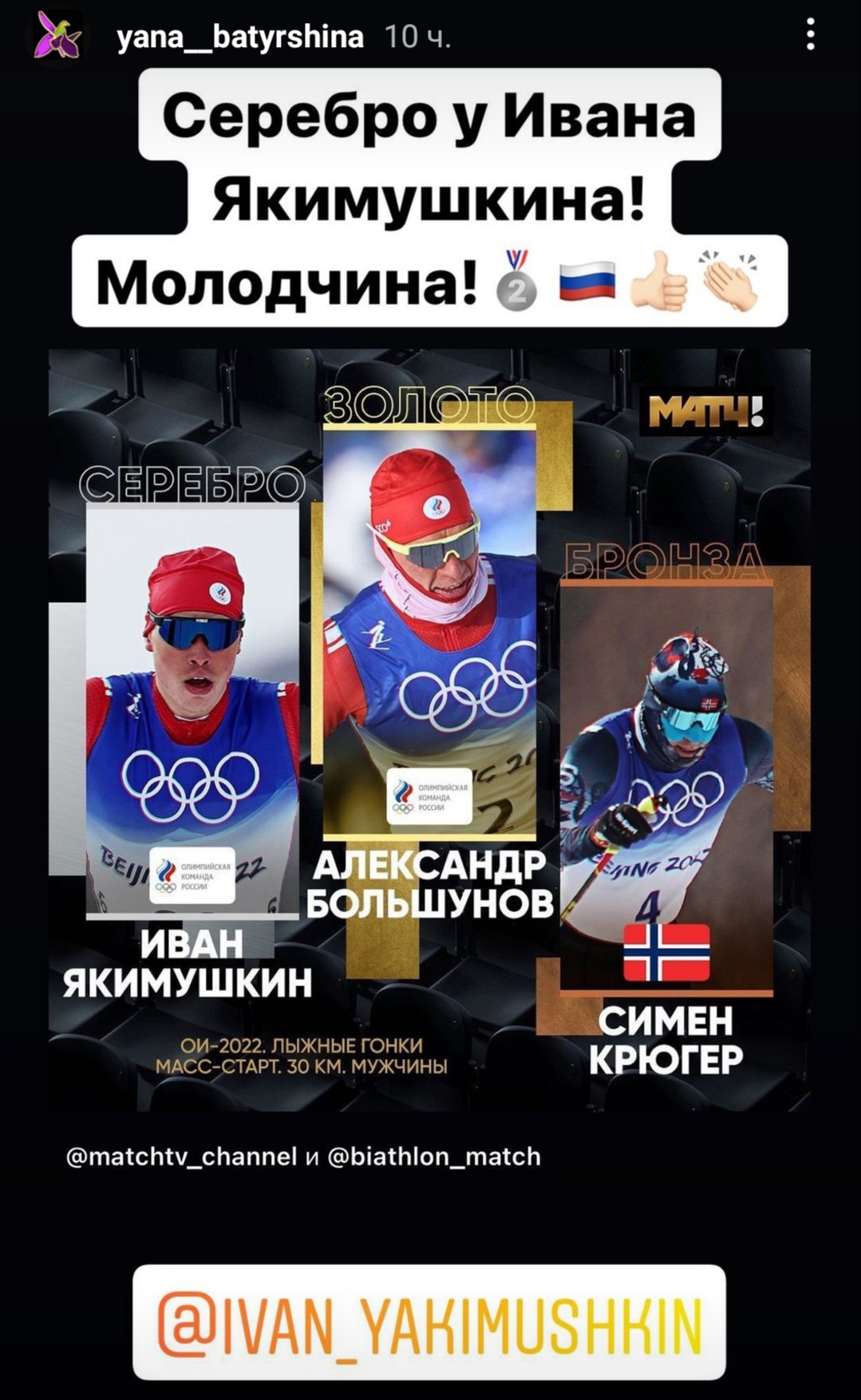 "Серебро у Ивана Якимушкина! Молодчина!" - написала Яна.