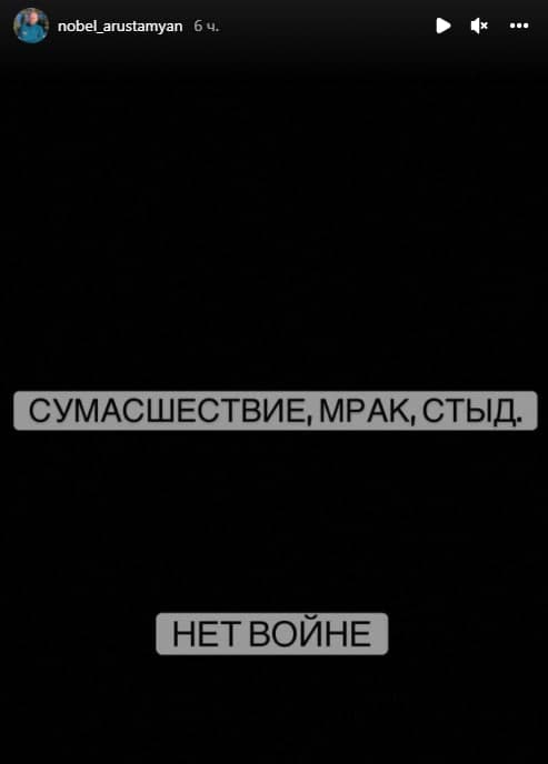 «Сумасшествие, мрак, стыд. Нет войне», - написал Арустамян в сторис инстаграма.