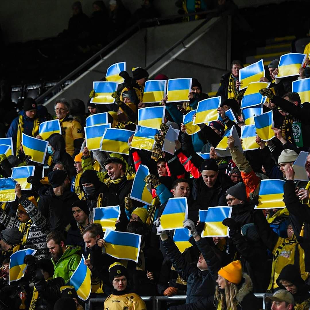 Во время ответного матча ЛК «Буде/Глимт» - «Селтик» в руках у болельщиков украинские флаги