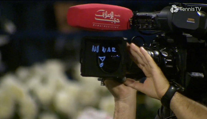 Веселы вышел в финал турнира в Дубае и написал на камере оператора: «Нет войне»