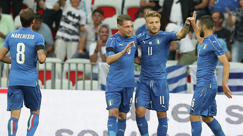 Итальянцы смотрятся в отборе очень уверенно и идут вровень с лидирующими испанцами, проигрывая сопернику только по разнице мячей. Именно в игре с «красной фурией» подопечные Джампьеро Вентуры и потеряли единственный раз зачетные баллы, сыграв ничью 1:1. Остальные соперники особых проблем «макаронникам» не доставили, общий счет 12:2 в четырех поединках говорит сам за себя. В начале недели «скуадра адзурра» провела товарищеский матч с Уругваем и добилась уверенной победы 3:0.