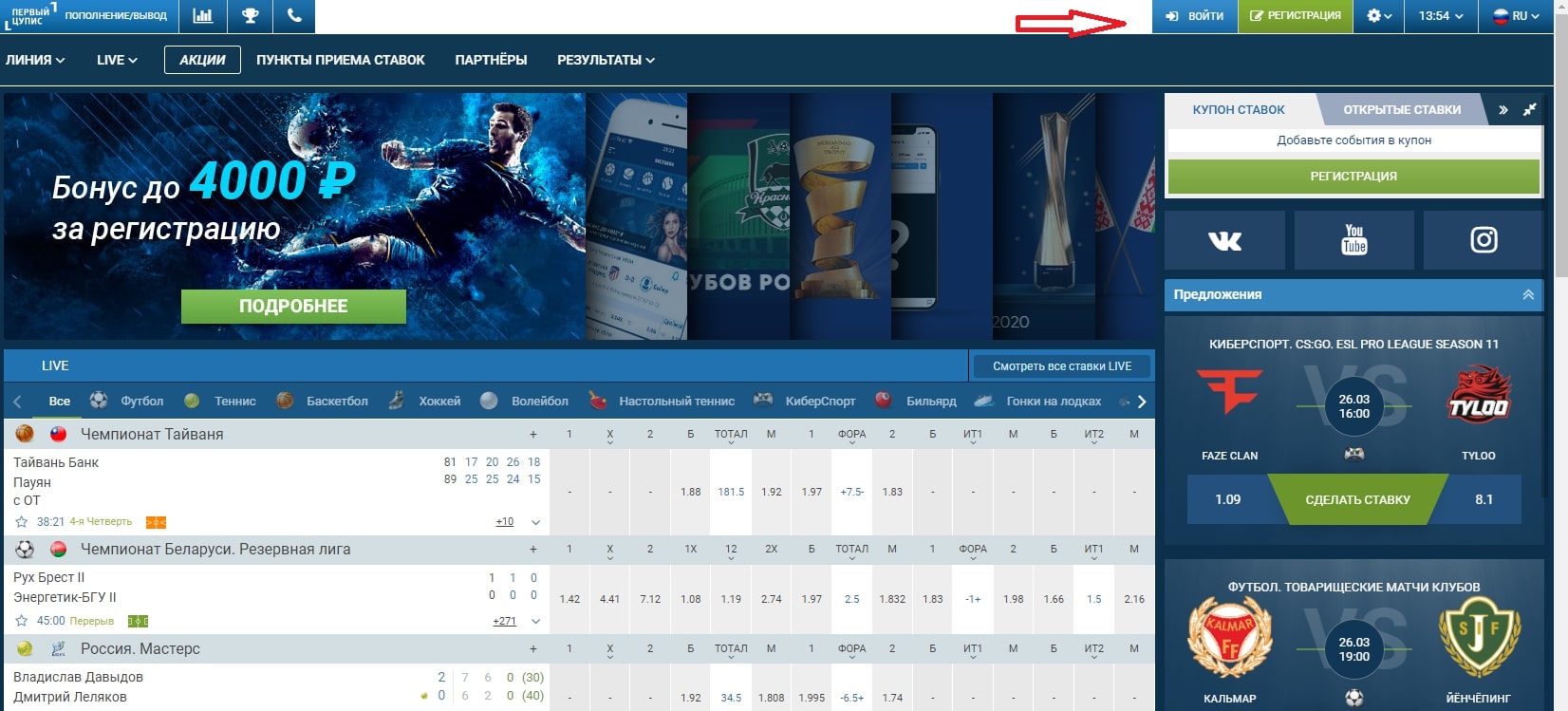 Для начала нужно будет зарегистрироваться на сайте одного из легальных в России букмекеров, в нашем рейтинге можно найти подробную информацию по каждому из них. Там же можно найти и подробную инструкцию по регистрации.