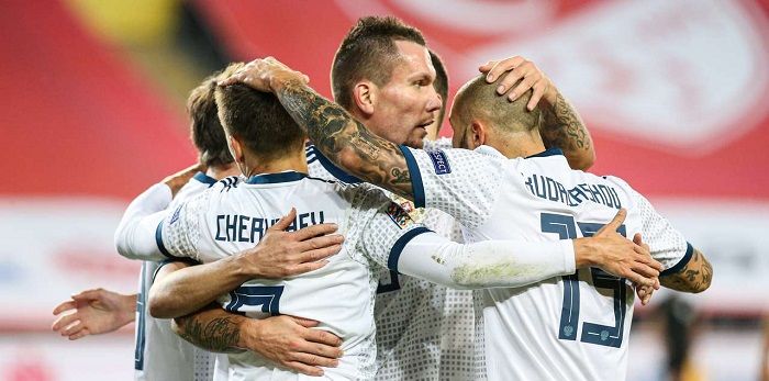 Наш прогноз — победа России с форой (-2) гола и ставим на это по линии БК Winline с коэффициентом 1.66