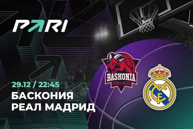 29 декабря в рамках баскетбольной Евролиги «Баскония» примет на своей площадке самый титулованный клуб турнира — мадридский «Реал». Начало игры — в 21:00 по московскому времени. Аналитики букмекерской компании PARI оценили шансы на победу обеих команд.