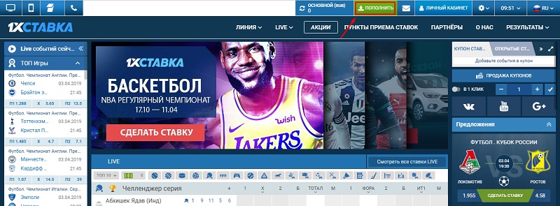 Как пополнить счет в букмекерской конторе 1хСтавка