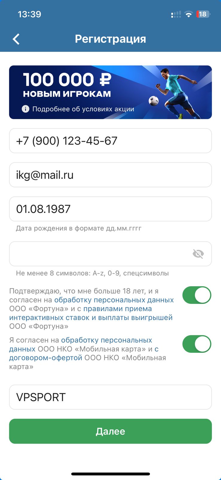- Доступ к полному функционалу букмекера (также потребуется идентификация)