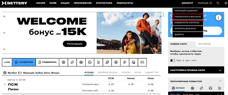 Перевести первый депозит можно сразу же после регистрации. Компания предлагает несколько способов. Так как деятельность букмекера направлена на молодежь, то были выбраны самые популярные варианты среди продвинутых бетторов. Игроки могут совершить оплату при помощи банковских карточек, электронных кошельков и платежной системы Apple Pay.