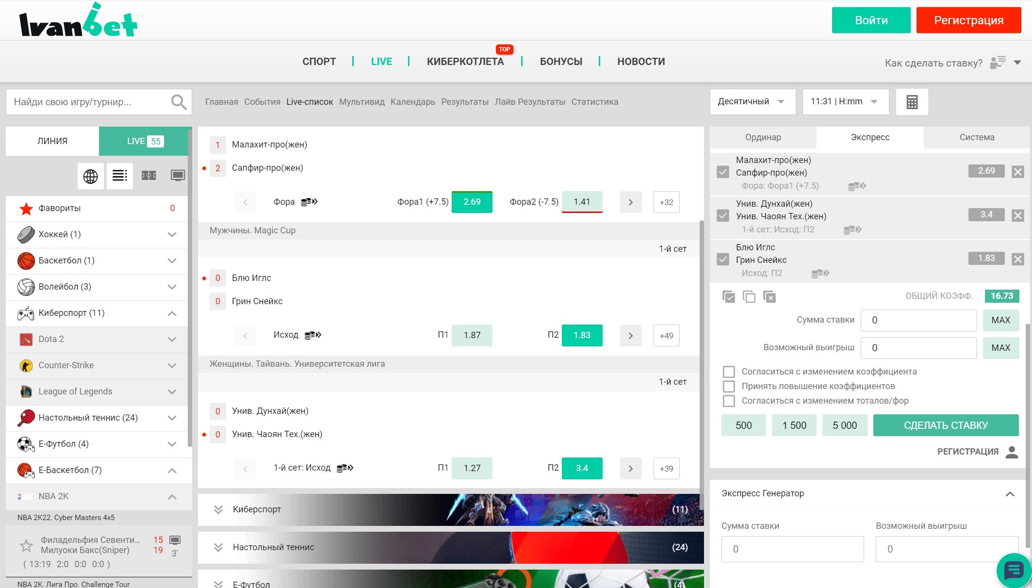 Интерфейс сайта Иванбет разработан таким образом, чтобы купон со ставками всегда находился на виду, поэтому для его открытия не нужно постоянно переходит на другие страницы и вкладки. Правильное размещение билета значительно экономит время. Особенно это важно для тех игроков, которые предпочитают заключать пари в лайв-режиме. Можно реже проверять котировки и сосредоточится на просмотре прямой трансляции важного матча.
