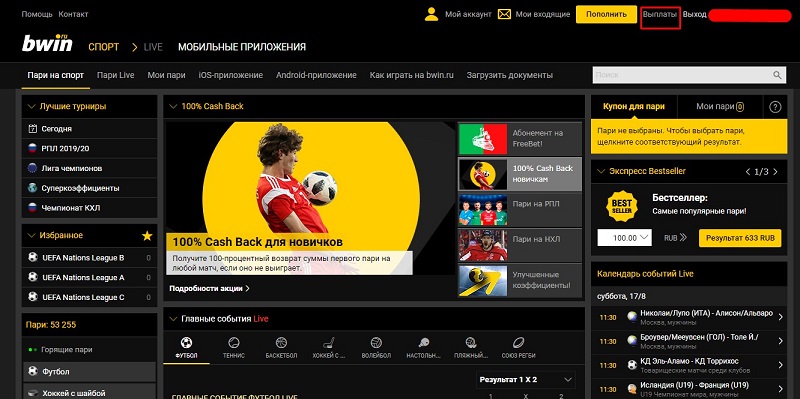 Вывод средств в БК Bwin