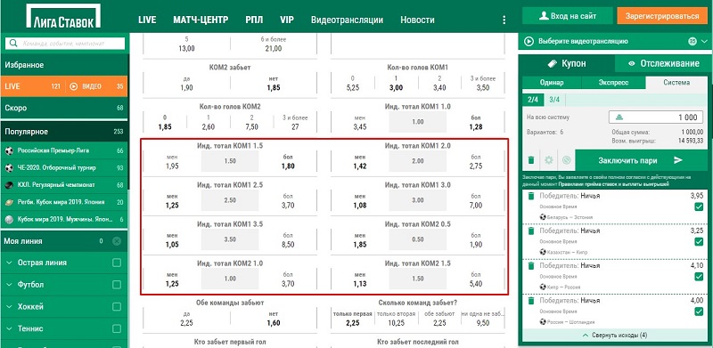 БК Лига Ставок ставки на тотал