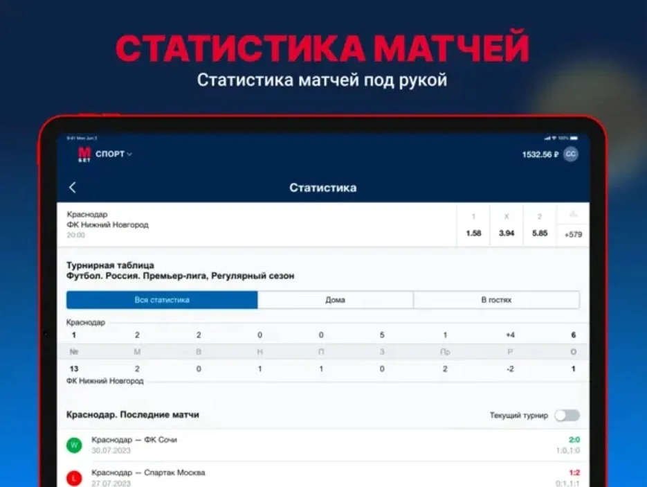 - наличие расширенной статистики по матчам.
