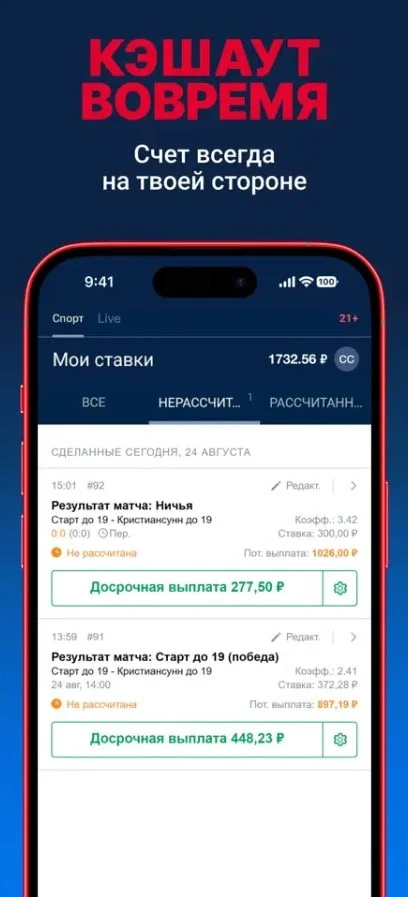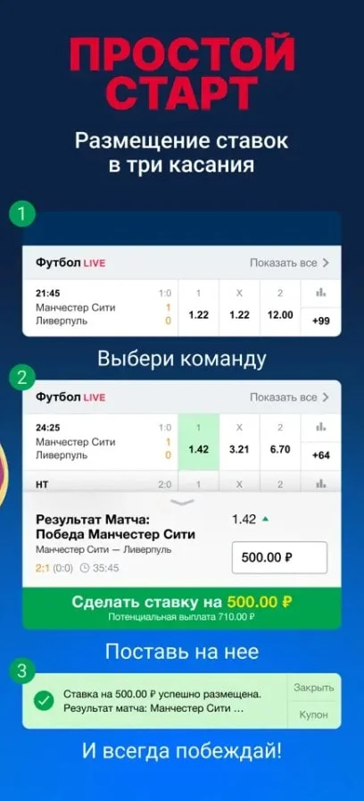 - заключать пари в Live-режиме по ходу матча в реальном времени;