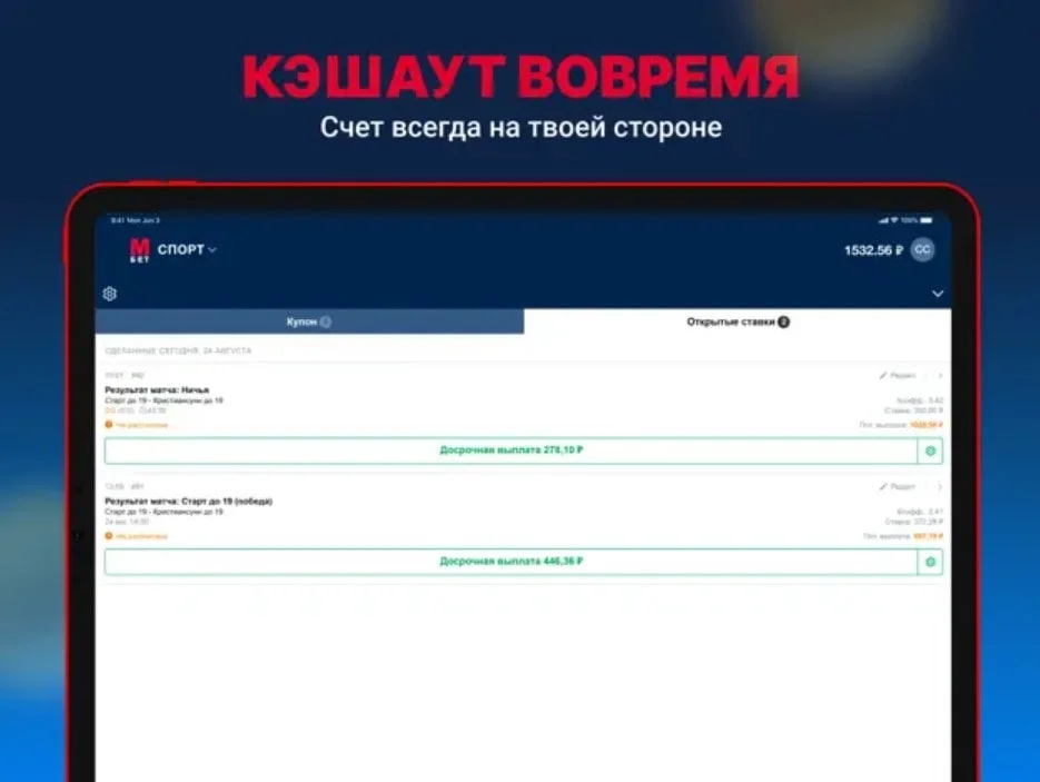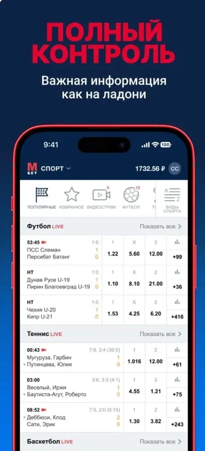 - доступ ко всем тем же функциям, что и на официальном сайте букмекера;