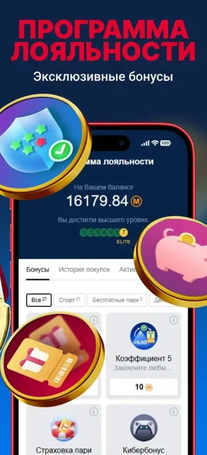 - ставить на спортивные события, пополнять счет и выводить выигрыши;