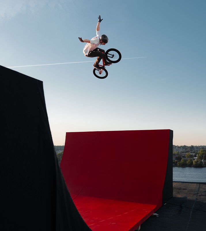 Всего было создано три участка трассы. Первый представлял собой линию из трех фигур, требующих от спортсмена идеального контроля над велосипедом. Вторая станция состояла из одной фигуры, установленной на краю мостика, возвышающегося на 15 метров над поверхностью реки. Здесь от спортсмена требовалась смелость и идеальная техника выполнения сальто. Третий и самый опасный участок находился прямо на вершине водонапорной башни и требовал от спортсмена максимального фокуса и демонстрации высочайшего уровня мастерства.