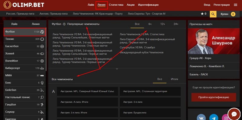 Перед тем, как переходить к ставкам на спорт, пользователю необходимо создать аккаунт, пройти верификацию и пополнить счет. После этого игрок сможет заключать пари с букмекером Олимп. Чтобы поставить сразу на несколько матчей, следуйте инструкции: