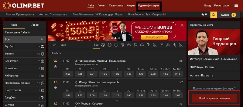 Как пройти идентификацию в БК Олимп