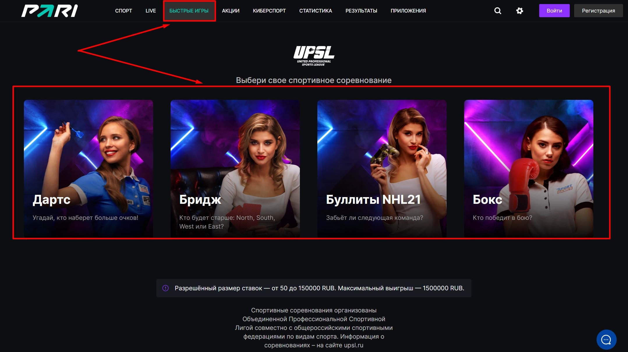 Быстрые игры в букмекерской конторе Pari