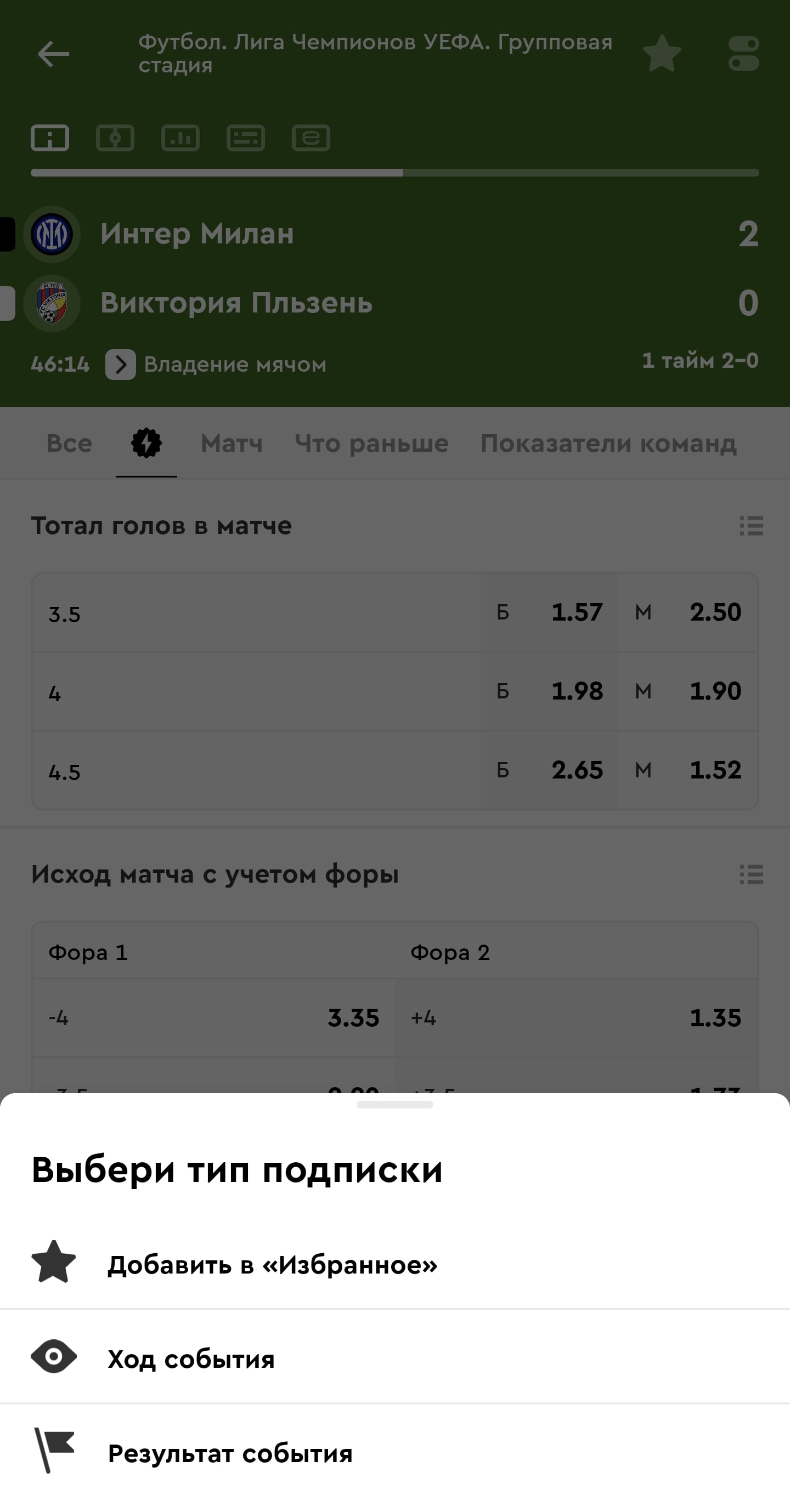 Возможность добавить в избранное любимый чемпионат, лигу и дивизион, а также самый ожидаемый матч