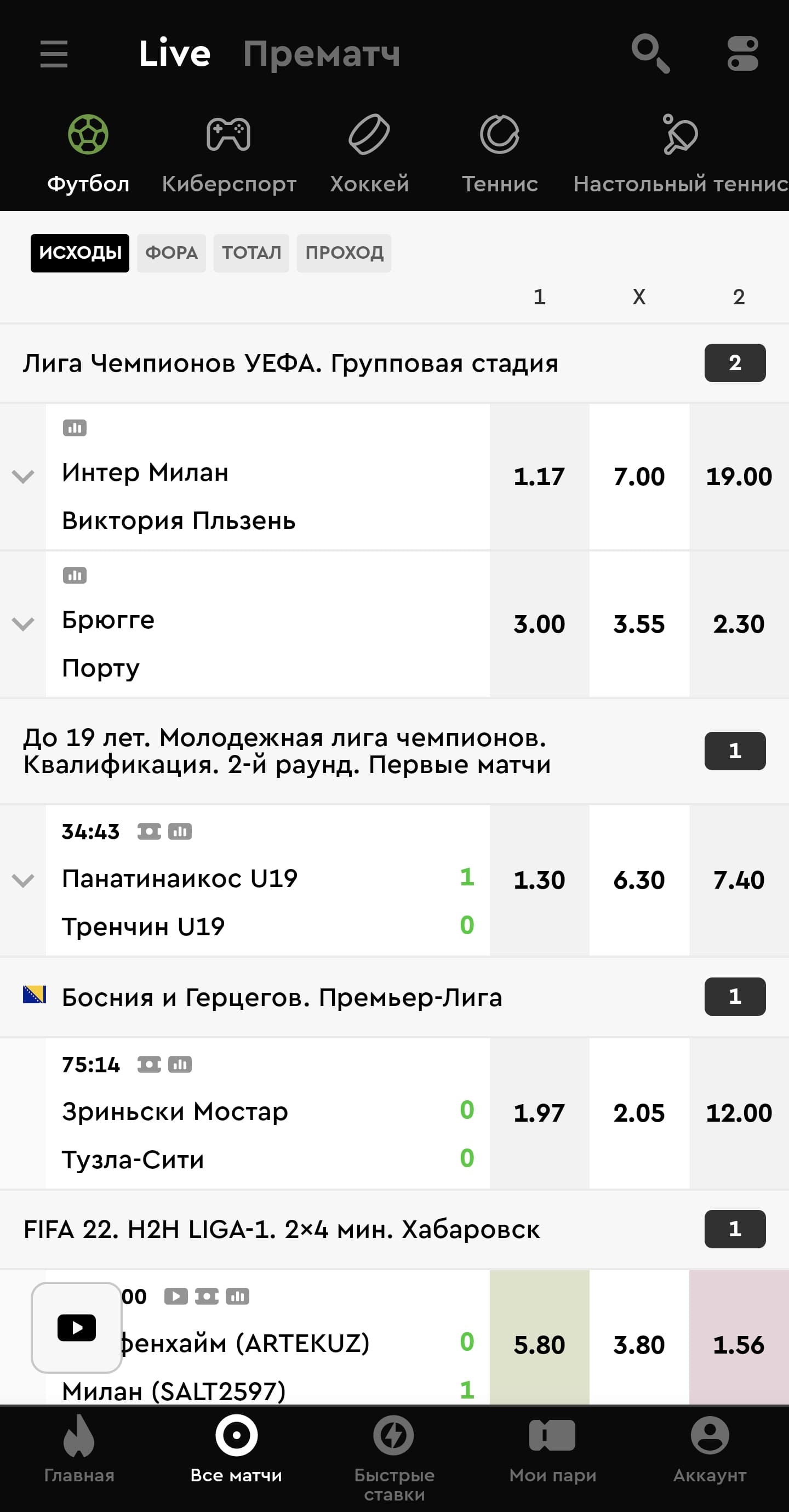 6. Прямые трансляции - на сайте букмекера есть текстовые и видеотрансляции избранных событий.