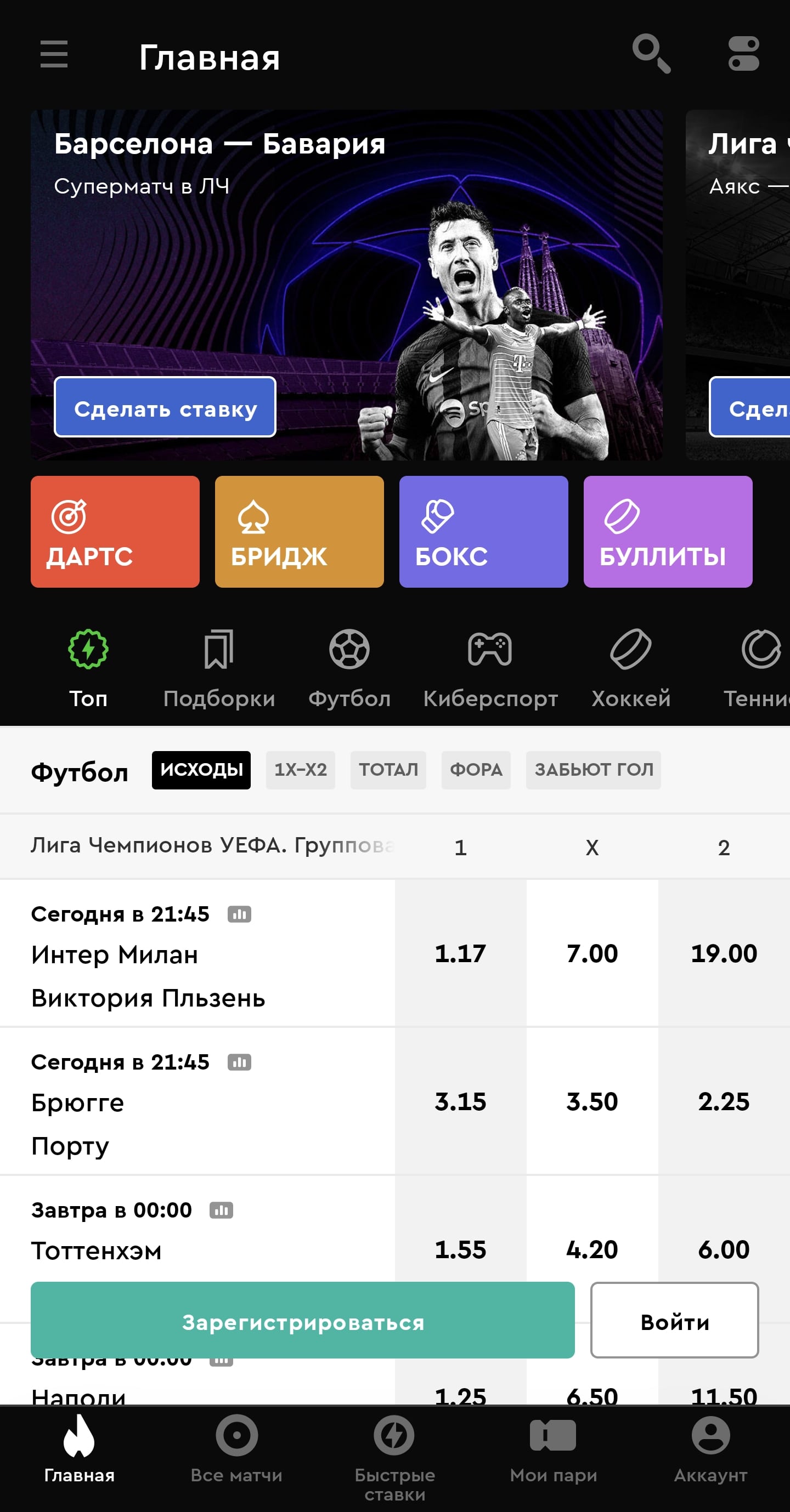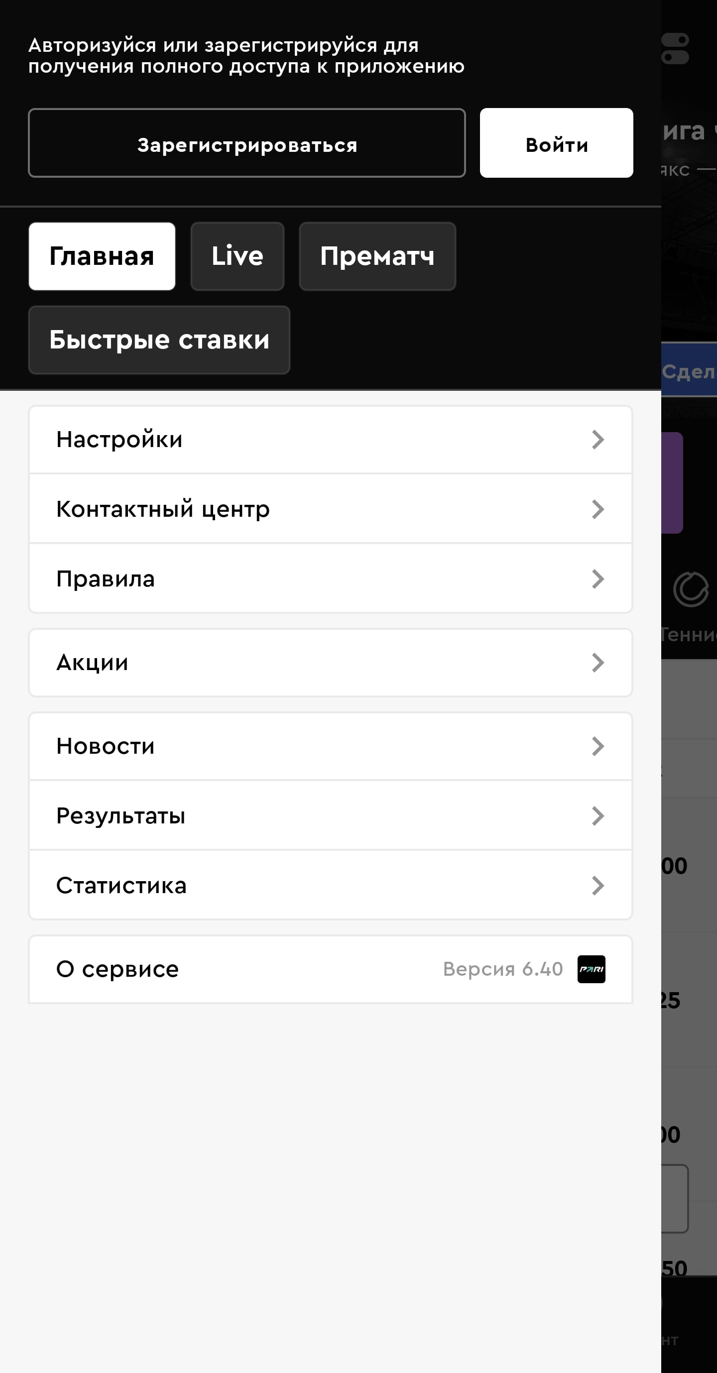 Первое, что увидит пользователь после установки — это страница авторизации. Для заключения пари в БК ПАРИ необходимо иметь собственный игровой счет, который можно зарегистрировать на официальном сайте или через мобильное приложение БК. В процессе регистрации есть возможность использовать промокод Пари. После того как доступ к игровому счету был получен, можно приступать к непосредственному использованию.