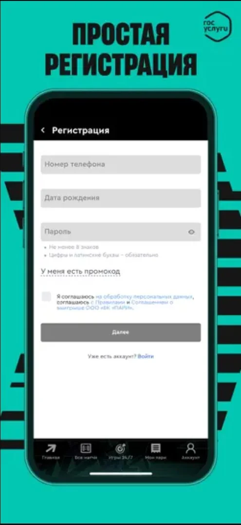 Чтобы получить доступ ко всем функциям приложения, введите логин и пароль, который применяется для авторизации на официальном сайте оператора. Как уже упоминалось выше, новые участники пари могут открыть счет прямо c мобильного устройства от компании Apple.
