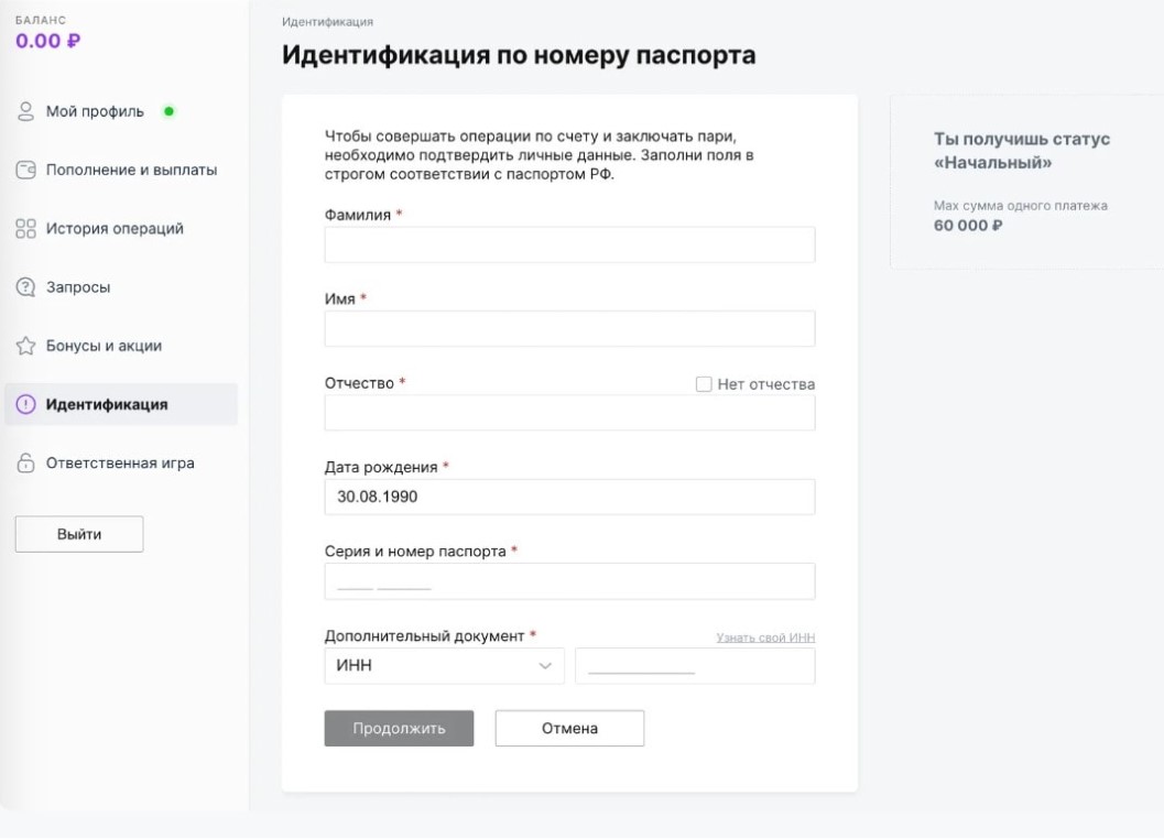 В связи с этим, новые клиенты букмекера должны идентифицировать свою личность, загрузив отсканированные копии документов в личном кабинете. Также вам понадобится верифицированный кошелек на сайте Первого ЦУПИС, который выступает гарантом выплат между клиентом и оператором.