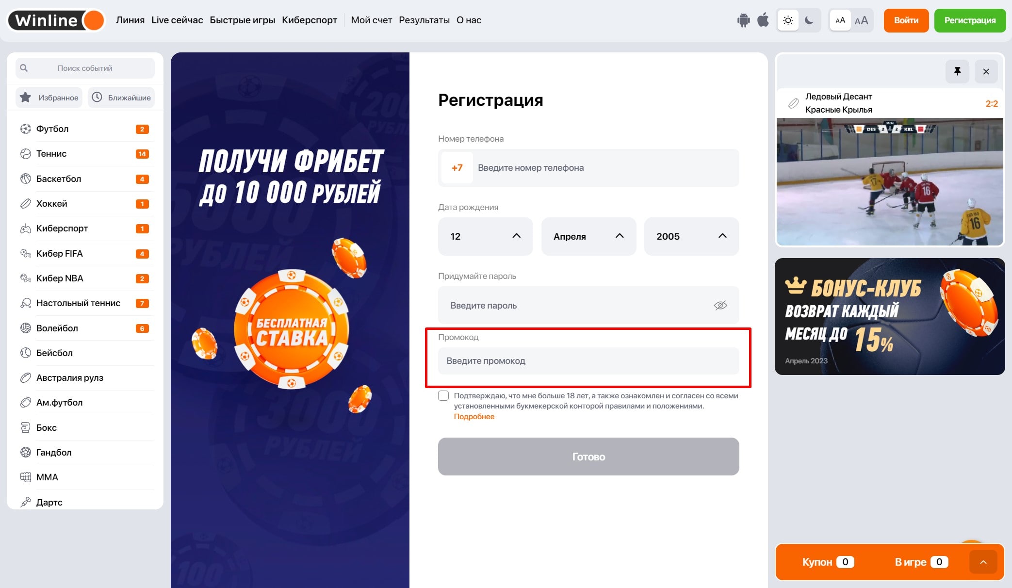 Промокод от букмекерской конторы Winline