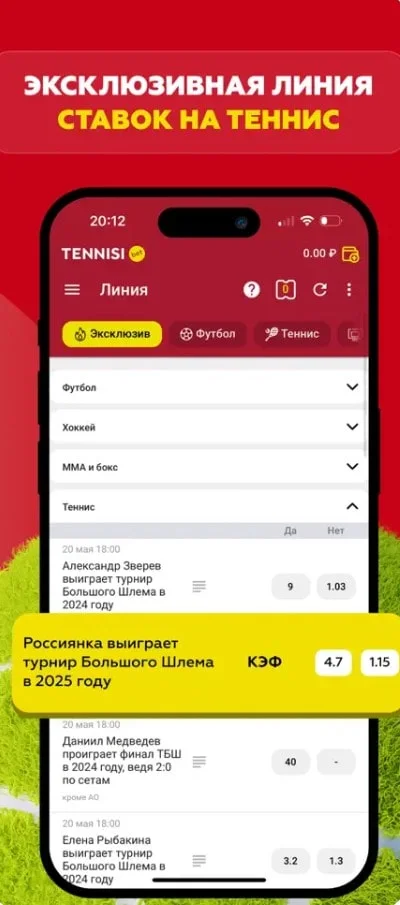 Скачать мобильное приложение БК Tennisi
