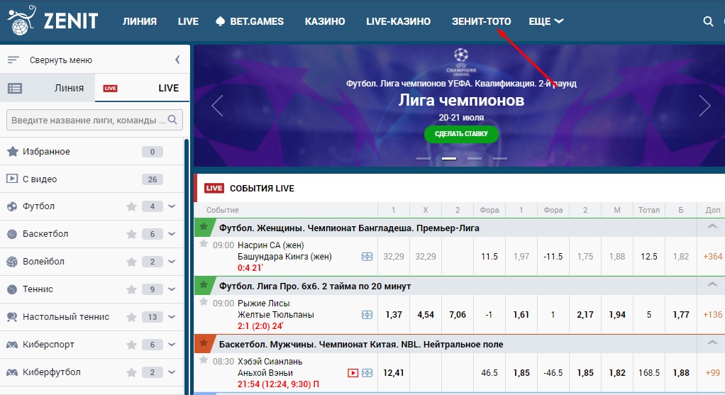 Играть на Тото в БК Зенит